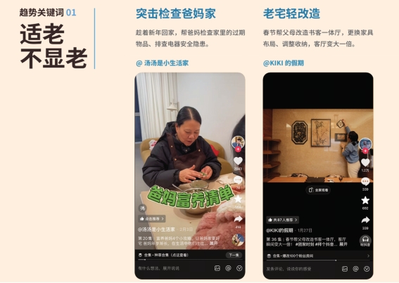 01 引言 当团圆的形式不再囿于地域,当年俗的表达愈发贴合本心,当传统的年味在新潮演绎中焕发新生,中国人的春节正生长出属于当代的全新模样。 2025年春节期间,无数用户用真实的消费数据为“过年”写下了新的注脚,抖音生活服务订单总量及销售总额均实现大幅增长,印证了新春消费市场的蓬勃活力,更折射出国人过年方式的深层变革。消费不再是单纯的物质置办,而成为了情感表达的载体、生活态度的彰显。从品类的多元升级到人群的结构变迁,从传统的回归焕新到科技的温情赋能,每一组数据的背后,都是千万家庭对新春的美好期许,也是当代新年味最生动的印章。 基于抖音平台2025年春节的真实数据与用户观察,抖音生活服务家行业联合巨量引擎商业化IP「家的三部曲」,共同发起春节热点造风项目《我家过年新三样》,重磅发布《2026「年味新生」趋势洞察》报告,梳理出六类核心人群画像、三大趋势及十二大生活场景,同步推出《抖音生活服务2026家居家电【年货】排行》,既用专业数据锚定行业风向,更以温暖笔触捕捉普通人的新春烟火,让我们看见:新年味,早已是传统与现代的共生,是理性与感性的交融,更是“认真爱、用心生活”的本质回归。 02 解锁新年味:多元人群引领,三大趋势焕新 新年味的多元表达,藏在不同人群的生活追求与价值选择里。《2026「年味新生」趋势洞察》报告基于抖音平台用户行为拆解,勾勒出六类核心人群,他们以各自的生活逻辑,共同引领着新春年味的三大焕新趋势,让“过年”不再有统一答案,更让“年味”在多元需求中焕发新生。 这六类核心人群各有底色、相得益彰:仪式传承捍卫者坚守传统年俗、传承地域文化,是年味根脉的守护者;理性规划师统筹家庭资源、优选好物服务,追求高效团圆;在地生活家笃信本土习俗、扎根市井烟火,筑牢新春烟火气;新兴游牧者依托云端工具、维系跨城情感,让团圆突破地域限制;先锋体验家热衷新潮玩法、重视个性表达,打造“赛博年味”;高价值人群聚焦品质生活,从家庭健康、高端审美到高效质感,多元维度推动年味不断进阶。