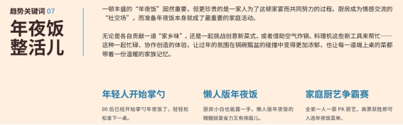 新春的夜晚,更需要一盏暖灯守护团圆,非遗龙虎灯将中式美学与传统工艺完美融合,光线透过宣纸变得柔和温润,神兽的剪影映在墙上,既能照亮团圆之夜,又能传递非遗文化的魅力,让老工艺走进当代家庭,成为新春氛围中最具温度的点缀。传统以鲜活模样融进新春日常,年味也便有了更真切的触感与温度。 04 结语:新年味,是认真生活的本真模样 这些鲜活的数据、多元的趋势与实用的好物,最终都指向一个核心:新年味从未背离传统,而是以当代方式诠释团圆与热爱,藏于用心生活的日常。它是传统与现代、理性与感性的交融,是科技与情感的双向加持。归根结底,所有新潮表达皆源于“认真爱、用心生活”,这是中国人的团圆向往,也是新年味生生不息的密码。 抖音生活服务家行业发布《2026「年味新生」趋势洞察》报告及《抖音生活服务2026家居家电【年货】排行》,不仅是为行业提供一份精准的新春消费参考,更将趋势与好物深度绑定,以趋势为导向、以场景为核心,让每一份对新年的期许都能被看见、被尊重。