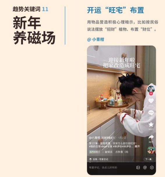 而年轻人以幽默方式践行的“新年养磁场”,更是将传统的辞旧迎新与现代的心理建设相结合,清理卫生死角、布置新春氛围,在物理空间的整理中提振精气神,为新年营造顺遂氛围,让传统习俗的美好寓意,与当代人的生活需求完美契合。