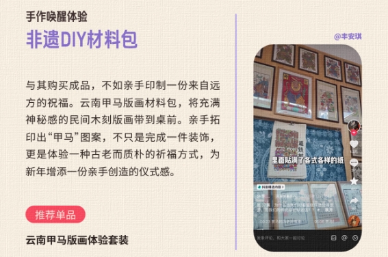 年夜饭后的家庭时光,需要更多欢乐点缀。家庭投影仪可将一面白墙变成百寸家庭影院,全家一起看贺岁片、回顾家庭老照片,让笑声与光影填满客厅;无线卡拉OK麦克风瞬间点燃家庭氛围,经典老歌、流行金曲随心唱,全家老少齐参与,并肩欢唱,感受纯粹快乐;照片打印机当场打印手机里的团圆瞬间,贴在冰箱上、做成小相册,让转瞬即逝的欢笑,变成触手可及的珍贵回忆。 文化解冻好物:以传统为魂,焕发当代生机 传统焕新的意义,是让老文化走出时光,融入当下生活,让年味不再是遥远的记忆,而是可触摸、可参与的生活体验。针对年轻人“传承传统、追求文化质感”的需求,排行入围的文化好物,兼顾传统底蕴与当代审美,让手工创作的温度、中式美学的雅致,成为新春家居的一抹亮色。 手作的温度,是年味最动人的表达,云南甲马版画材料包为传统传承搭建了便捷路径,在亲手创作的过程中,感受传统工艺的魅力,为新年增添一份专属的仪式感。门楣上的春联,是新春最直观的祝福,春联套装将传统祥瑞与当代审美完美融合,让传统祥瑞文化融入家居门面装饰。