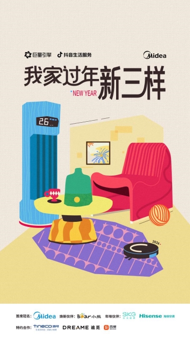 此外,美的与抖音生活服务家行业联合推出的#我家过年新三样 专属话题,更是深挖新时代年味的全新内涵,截至2026年2月2日,话题收获超5.3亿次播放,无数用户分享属于自己的新年味表达:美的全屋智能把“守护”藏进家里每一个角落,智能调节温湿度的空调让室温始终保持舒适,全家齐聚守夜的夜晚温馨愉快;智能冰箱语音开启一键备餐模式,搭配美的美居APP,根据食材智能推荐食谱,让年夜饭筹备更加得心应手;自动恒温的热水器让洗澡不再需要心理建设,享受身心畅快的除夕之夜。各色好物让守岁、红包、年夜饭的传统形式,在当代有了全新的演绎,也让品牌与用户在新春话题中形成深度共鸣,共同记录年味的变迁。